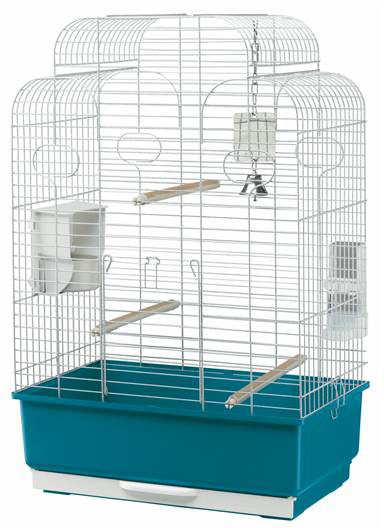 Просторна клетка за вълнисти папагали и нимфи. В горната си част има специални заоблени форми, за да се гарантира техния комфорт и свобода на движение.