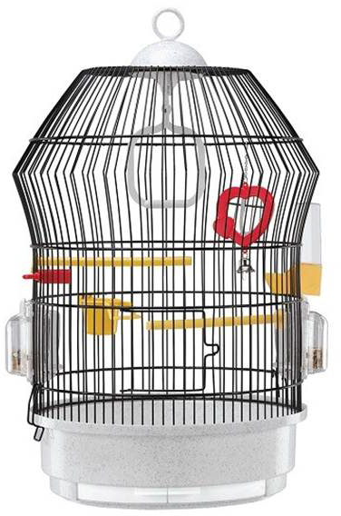 Включва: 2 пластмасови хранилки, 1 поилка, 2 пластмасови пръчки, 1 поставка за сепиева кост, 1 огледало играчка, 1 люлка, 1 хранилка за десерт.