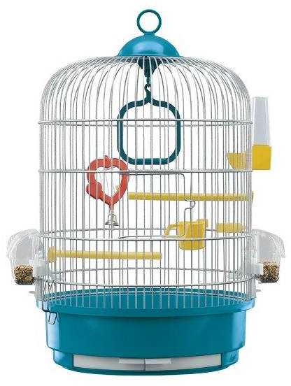 Удобна кръгла клетка с малък размер за канарчета, екзотични птици и други дребни птици. Тя е изработена от метални решетки бяла пластмасова основа и две подвижни тавички.