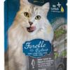 Съдържа: Пъстърва (30%); пилешко сърце, черен дроб (30%); бульон от пъстърва , пилешко месо, говеждо месо (28,7%); телешки бял дроб (10%); изсушени яйчени черупки, (0,5%); минерали (0,5%); масло от сьомга (0,2%); котешка трева (0.1%)