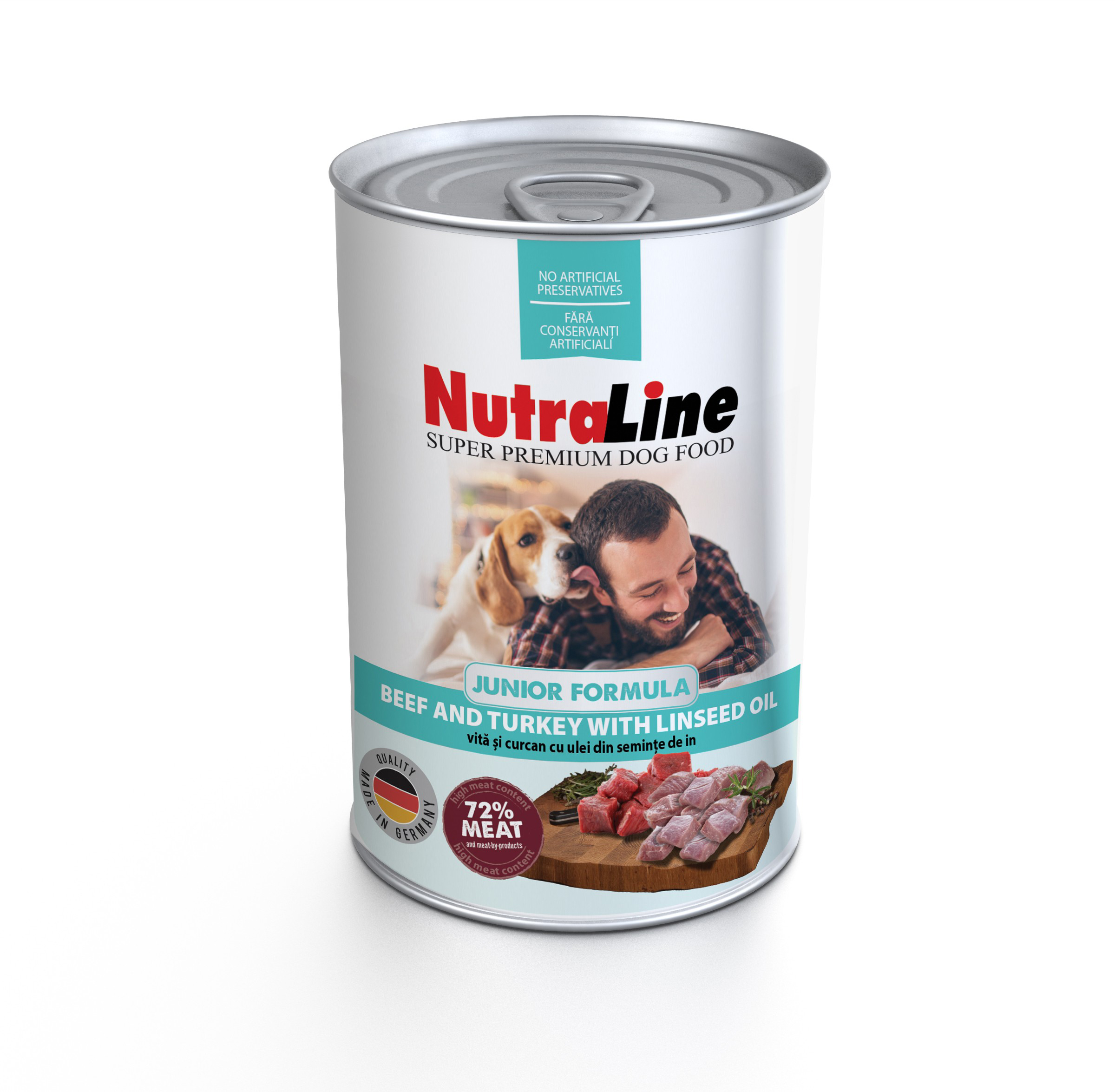 Пълноценна храна с говеждо, пуешко и ленено масло за подрастващи кучета. Тази пълноценна храна съдържа важни хранителни вещества, необходими за здравословния растеж на малките кученца. Вкусна рецепта с високо съдържание на месо, която ще поглези сетивата на кучето и ще запази здравето му за цял живот.