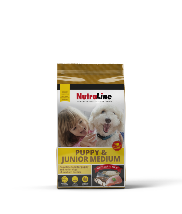 Суперпремиум храна за отглеждане на кучета, среден размер (11-30 кг), до 12 месеца и кученца по време на бременност (през последните 15 дни) и по време на лактация.