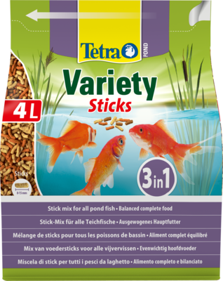 Комбинация от три различни вида храни, идеални за покриване на различни хранителни нужди на японския шаран Кои, златни рибки и други риби, които живеят заедно в едно и също езерце.